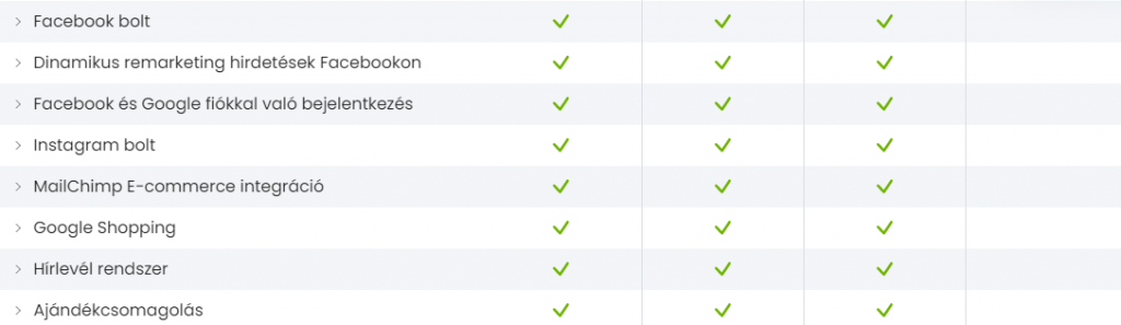 Mint ahogy az UNAS esetében is, a Shoprenternél is csak a magasabb kategoriájú előfizetésnél van lehetőség a fent felsorolt funkciók beépítésére.