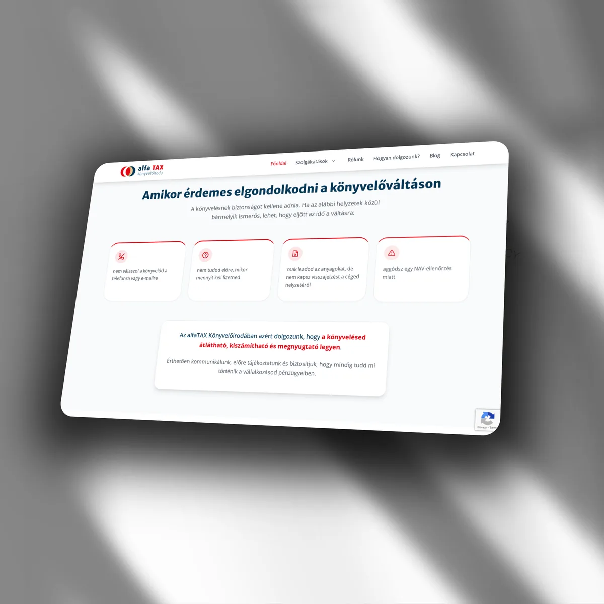 alfaTAX is an accounting office offering digital, paperless bookkeeping for companies, sole traders, and NGOs, operating nationwide online. They needed a website that differentiates them from the traditional accountant image.