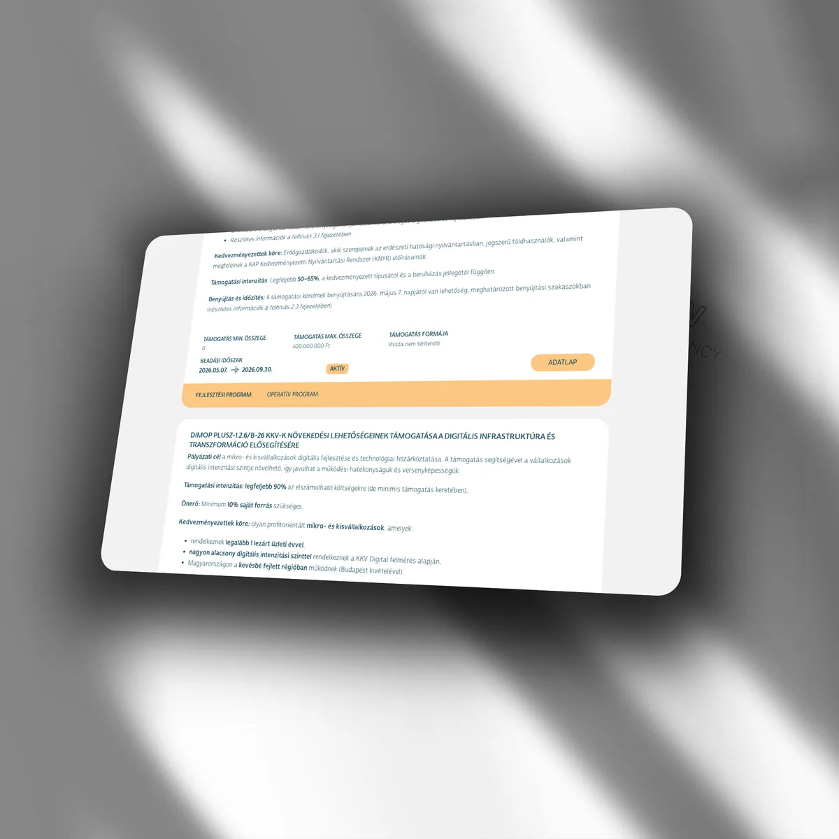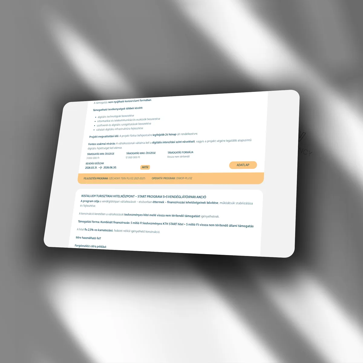 The Somogy County Chamber of Commerce and Industry needed a grant monitoring platform where members can browse and filter current grants in real time.