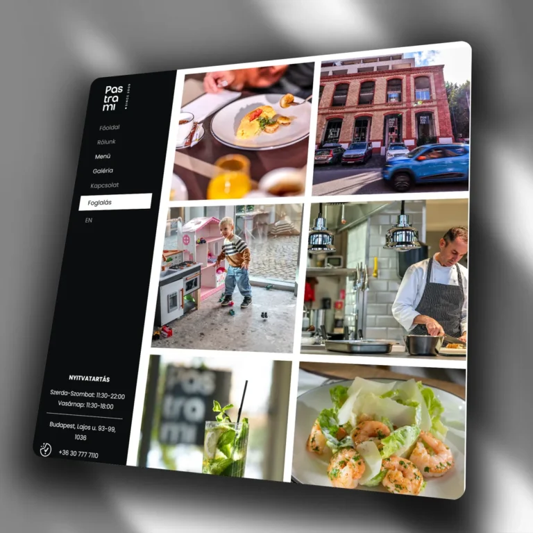 An atmosphere-driven, photo-forward design where the food and ambiance captivate the visitor instantly. The menu, gallery, and reservation system form one seamless experience. The bilingual layout (HU/EN) ensures smooth browsing for international guests.
