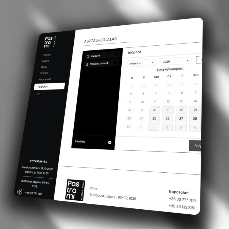 Pastrami Restaurant has been a defining player in Budapest's gastronomy scene since 2009. They needed a bilingual website that starts the dining experience online: visually rich, reservation-driving, and appealing to international guests.