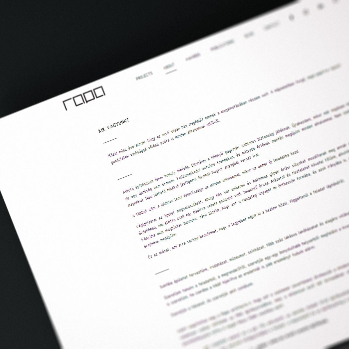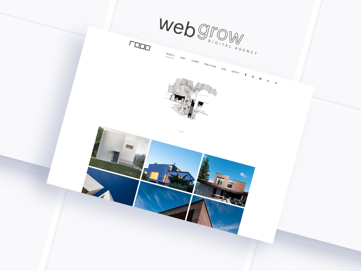 Portfolio website for the multi-award-winning architectural firm, Rapa Architects Kft., on behalf of our partner company, Social Wings Kft.