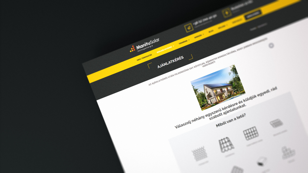Az egyedi webdizájn alapján készült Manitu Solar weboldal különlegessége az intelligens árajánlatkérő kalkulátor CRM összekötéssel.