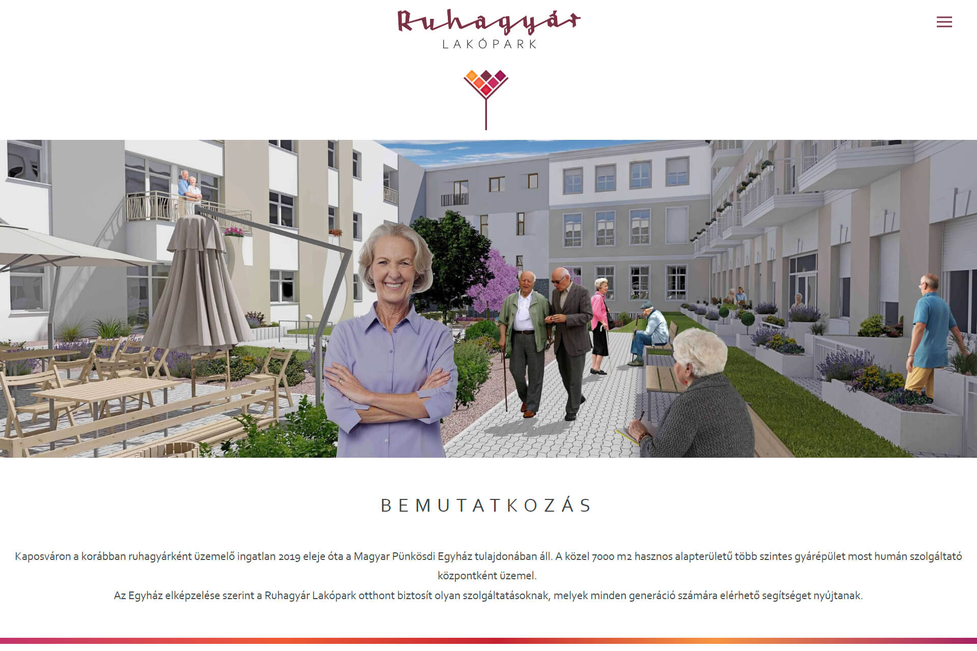 Kaposváron a korábban ruhagyárként üzemelő Ruhagyár Lakópark 2019 eleje óta a Magyar Pünkösdi Egyház tulajdonában áll. A közel 7000 m2 hasznos alapterületű, több szintes gyárépület most humán szolgáltató központként üzemel. Az Egyház elképzelése szerint a Ruhagyár Lakópark otthont biztosít olyan szolgáltatásoknak, melyek között itt található az MPE Szeretetotthon; az Életút Apartmanház; a Kerekerdő Családi Bölcsőde, és a Csemetekert Családi Bölcsőde is.